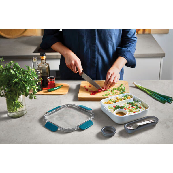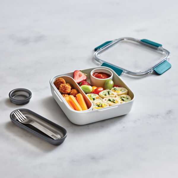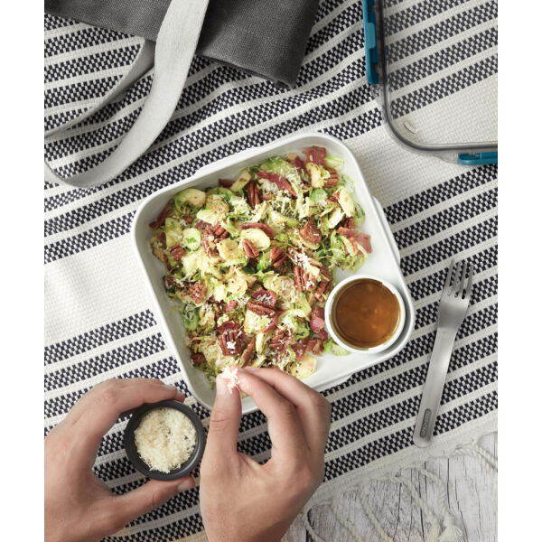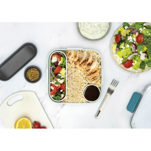 Geïnspireerd op het allereerste lunchbox-ontwerp van Black+Blum. De Lunch Box Original is ontworpen om eruit te zien als een keramische kom en bevat een binnencontainer, een lekvrije sauspot met een garnituurgedeelte in het deksel en een roestvrijstalen vork.