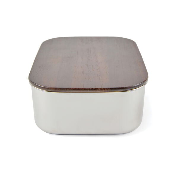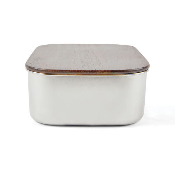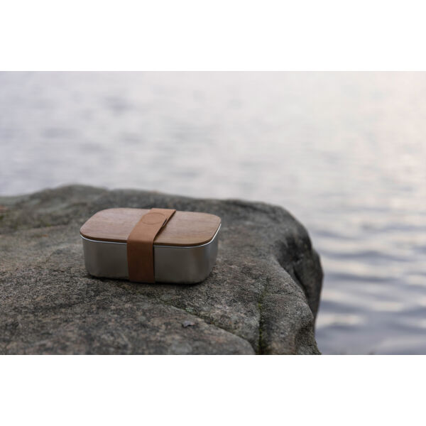 De Ciro RCS lunchbox van gerecycled roestvrij staal is een praktische en milieuvriendelijke lunchoplossing die is ontworpen met oog voor functionaliteit en milieubewustzijn. Het deksel, gemaakt van FSC®-gecertificeerd acaciahout, is voorzien van een handige PU-band met klittenbandsluiting voor veilig transport. Acaciahout is een organisch materiaal waarbij variaties in tint en kleur natuurlijke kenmerken zijn. Met deze lunchbox kun je gemakkelijk van je maaltijden genieten terwijl je een stap zet in het verminderen van het gebruik van wegwerpverpakkingen en plastic. Gecertificeerd door RCS (Recycled Claim Standard), de RSC certificering garandeert dat de hele toeleveringsketen van gerecyclede materialen gecertificeerd is. Het totale gerecyclede gehalte is gebaseerd op het totale productgewicht. Dit product bevat 39% RCS-gecertificeerd gerecycled roestvrij staal. Gemakkelijk schoon te maken. Alleen handwas. Inclusief FSC®-gecertificeerde kraftverpakking.