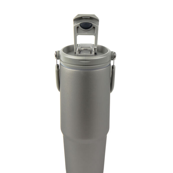 Deze vacuümfles van gerecycled roestvrij staal heeft een modern ontwerp dat functionaliteit met stijl combineert. Met een royale capaciteit van 880 ml is hij perfect voor hydratatie gedurende de dag tijdens je avonturen. De fles heeft een functioneel handvat voor gemakkelijk dragen en het deksel biedt twee drinkopties. Geniet van je drankjes met deze dubbelwandig geisoleerde fles die ze tot 16 uur koud en tot 3 uur warm houdt, zodat je de hele dag gehydrateerd blijft. Lekvrij. Niet vaatwasser- of magnetronbestendig, alleen met de hand wassen. Inclusief FSC®-gecertificeerde kraftverpakking. Gecertificeerd door RCS (Recycled Claim Standard), garandeert de RCS-certificering dat de gehele toeleveringsketen van gerecyclede materialen is gecertificeerd. Het totale gerecyclede gehalte is gebaseerd op het totale productgewicht. Dit product bevat 65% RCS-gecertificeerd gerecycled roestvrij staal.