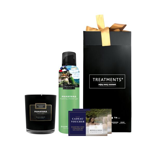 Voeg een vleugje foamige weldaad toe aan uw dagelijkse douchemoment met onze prachtige Giftbox! Trakteer uzelf, of verras een dierbare met deze stijlvolle set, die bestaat uit een heerlijk verfrissende Foaming Shower Gel en een sfeervolle Scented Candle. Steek het kaarsje ruim voor het douchen aan, zodat uw badkamer zich langzaam vult met de betoverende geuren van Treatments®. Laat u meeslepen op een droomreis naar het schitterende Bhutan, terwijl de aroma’s uw zintuigen prikkelen.