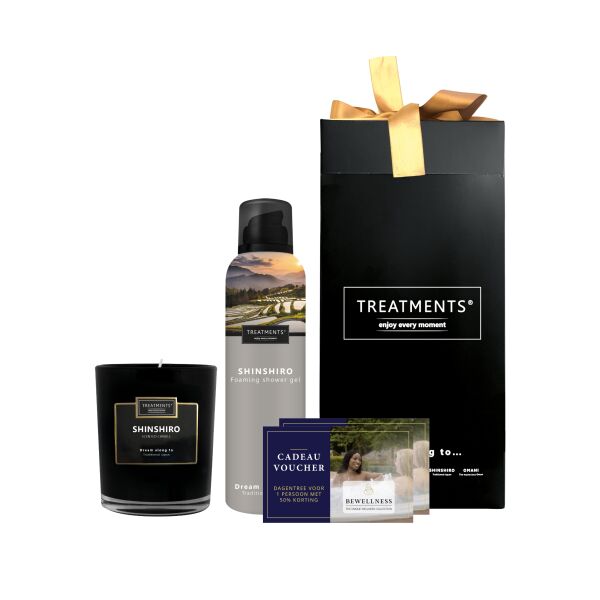 Voeg een vleugje foamige weldaad toe aan uw dagelijkse douchemoment met onze prachtige Giftbox! Trakteer uzelf, of verras een dierbare met deze stijlvolle set, die bestaat uit een heerlijk verfrissende Foaming Shower Gel en een sfeervolle Scented Candle. Steek het kaarsje ruim voor het douchen aan, zodat uw badkamer zich langzaam vult met de betoverende geuren van Treatments®. Laat u meeslepen op een droomreis naar het schitterende Japan, terwijl de aroma’s uw zintuigen prikkelen.