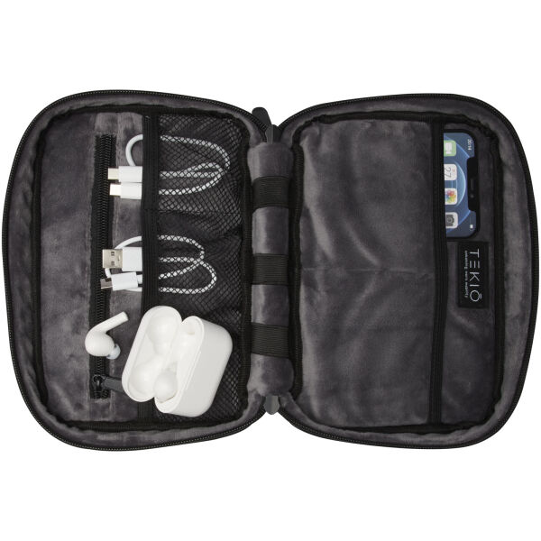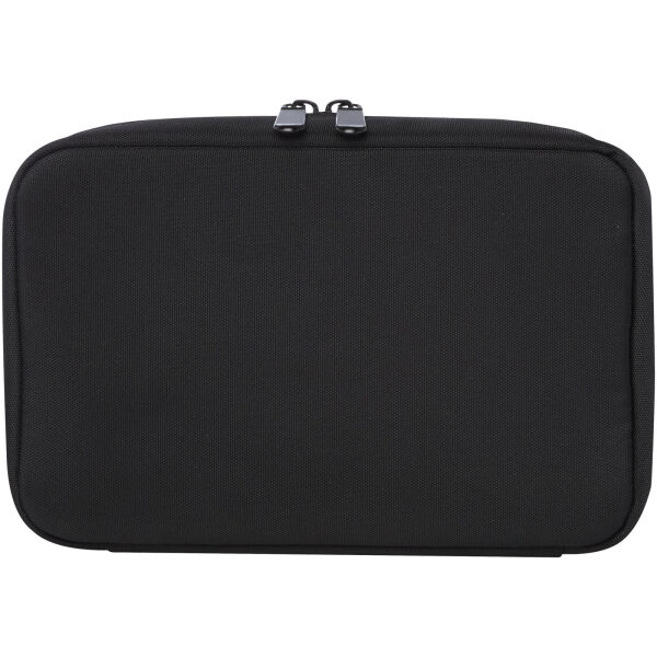 De Rise organizertas is een veelzijdige en hybride oplossing om alle technologiegerelateerde items te ordenen. Deze hardshelltas is gemaakt van duurzaam 900D GRS-gerecycled polyester en heeft een GRS-gerecycled fluwelen voering, twee zakken, mesh-zakken, elastische banden aan de onderkant voor kabels en een ritsvak voor extra accessoires. Alle zakken zorgen voor een optimale organisatie en de harde buitenkant beschermt alle waardevolle gadgets.