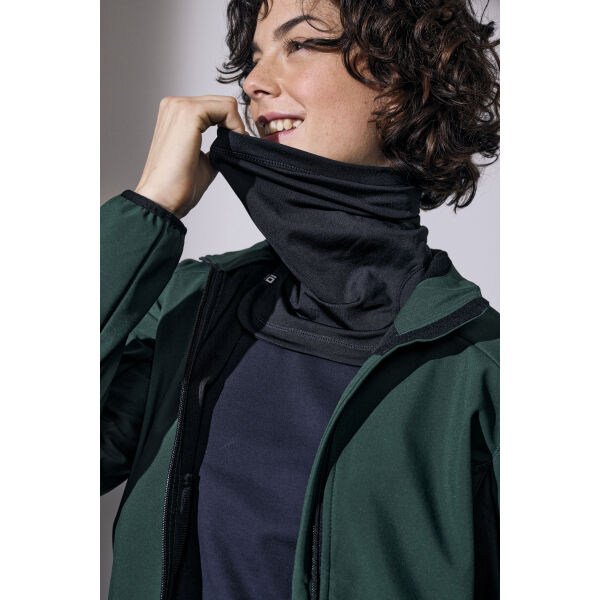Zachte hals wamer in vierweg rekbare stof met geborstelde binnenkant. Extra lengte aan de voorkant voor optimaal comfort en isolatie. Sneldrogend.