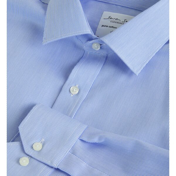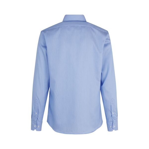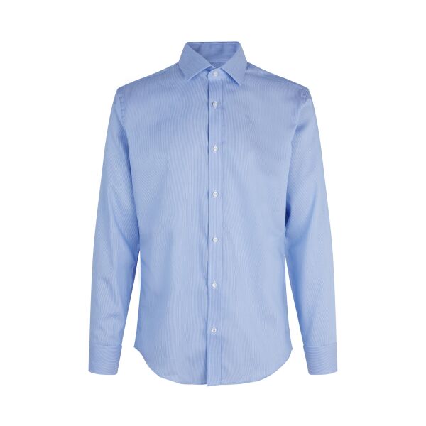 Modern zakelijk overhemd in krijtstreep fijne twill kwaliteit met strijkvrije afwerking. Klassiek model met modern silhouet en comfortabele pasvorm.