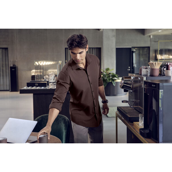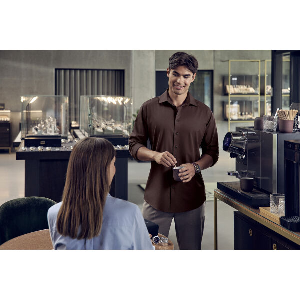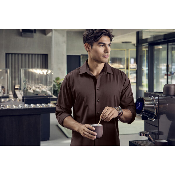 Een baanbrekende herinterpretatie van het klassieke overhemd dat de nieuwste technologieën combineert met grondig geteste en duurzame vezelproductie. Het shirt heeft een verbazingwekkende zachtheid op de huid, uitstekende viervoudige ultra-stretch, perfect ademend vermogen en thermoregulerende eigenschappen.