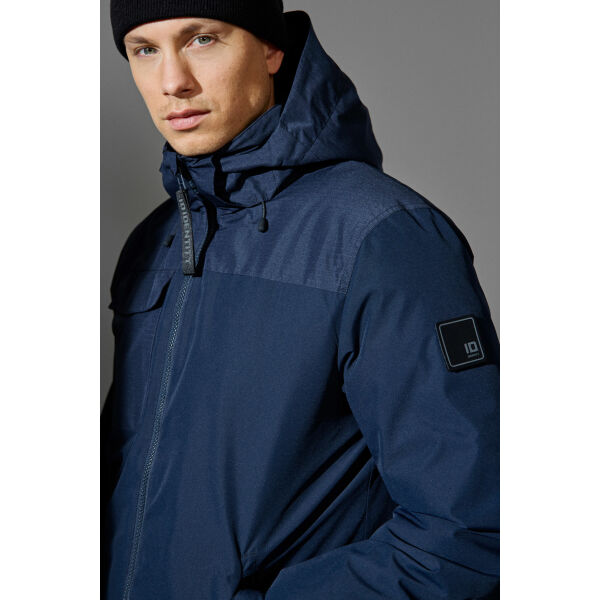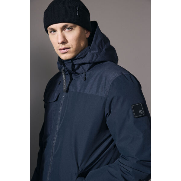 Nonchalant en stijlvol winterjack van ID Tech® gerecycled polyester met waterafstotende, fluorvrije BIONIC-FINISH® ECO. THERMOLITE® T-DOWN vulling – een lichtgewicht en ademende isolatie gemaakt van gerecycled PET-materiaal, met een donsachtig gevoel dat warmte biedt in koude en natte omstandigheden. Kraag van zacht materiaal en afneembare capuchon. Mouwen met verstelbare sluitingen en windmanchetten aan de binnenkant. Voering van stretch mesh voor extra mobiliteit en comfort. Rits aan de voorkant voor het bevestigen van een print. De jas is voorzien van een afneembaar schouderlabel en wordt geleverd met een extra blanco label, zodat je je eigen logo kunt bevestigen en een unieke identiteit kunt creëren.