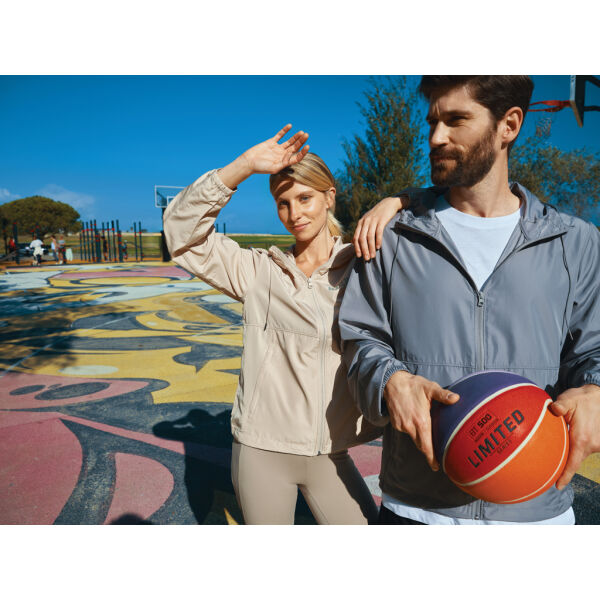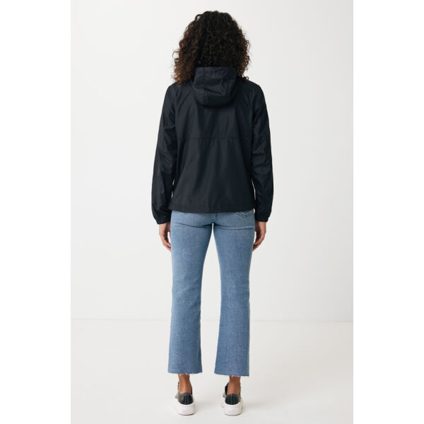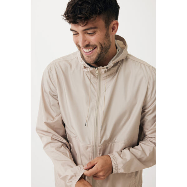 Unisex relaxed fit lichtgewicht jas van 100% post-consumer gerecycled polyester in 70 G/M². De jas heeft een verstelbare capuchon met elastisch koord…