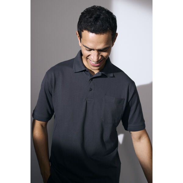 Extra duurzaam en klassiek poloshirt met borstzak. Nek- en schouderbanden. Halve maan in de nek. Het poloshirt is voorgekrompen bij zeer hoge temperaturen, zowel voor als na het verven, voor extra stabiliteit en een lange levensduur.