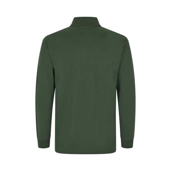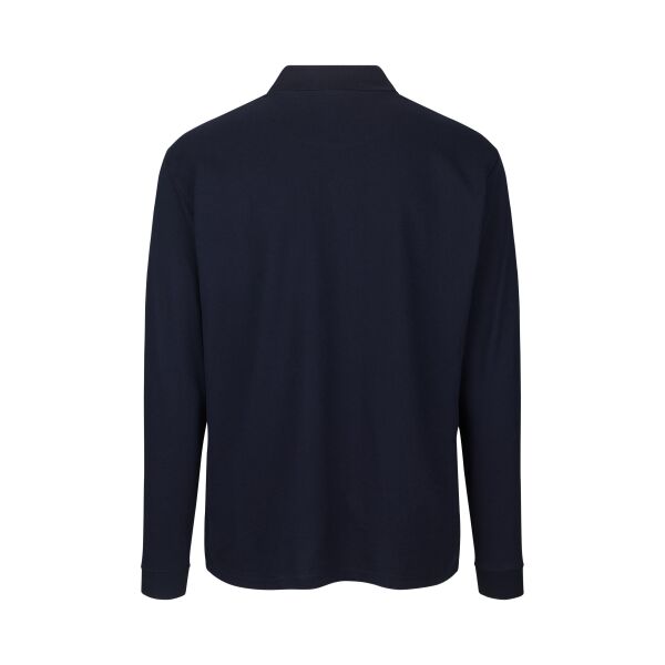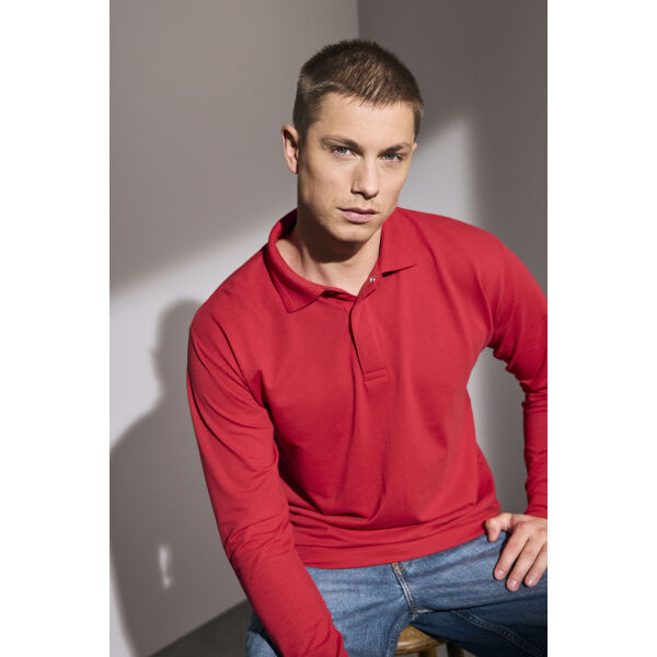 Extra duurzaam poloshirt met lange mouwen en drukknopen op de sluiting. Nek- en schouderbanden en halve maan in de nek. Het poloshirt is voorgekrompen bij zeer hoge temperaturen, zowel voor als na het verven, voor extra stabiliteit en een lange levensduur.