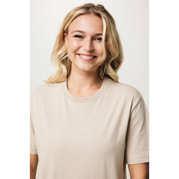 Unisex boxy fit t-shirt van 100% katoen (50% gerecycled/50% biologisch) 180 G/M². Dit trendy t-shirt heeft een halslijn met 1x1 rib en een comfortabele boxy fit met een iets kortere lichaamslengte. Het gebruik van echt gerecyclede en biologische stoffen en de milieueffecten worden gegarandeerd door het gebruik van de AWARE™ tracer en blockchaintechnologie. Door de QR-code te scannen, krijgt u toegang tot een speciaal digitaal product paspoort van het t-shirt. 2% van de opbrengst van elk verkocht product wordt gedoneerd aan Water.org. Dit product is OEKO-TEX® STANDARD 100 Centexbel gecertificeerd. Door de aard van gerecyclede garens kunnen onzuiverheden en kleurvariaties voorkomen.