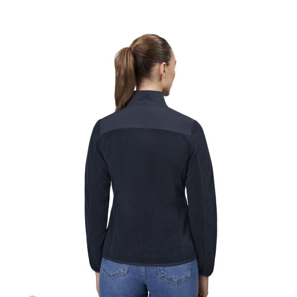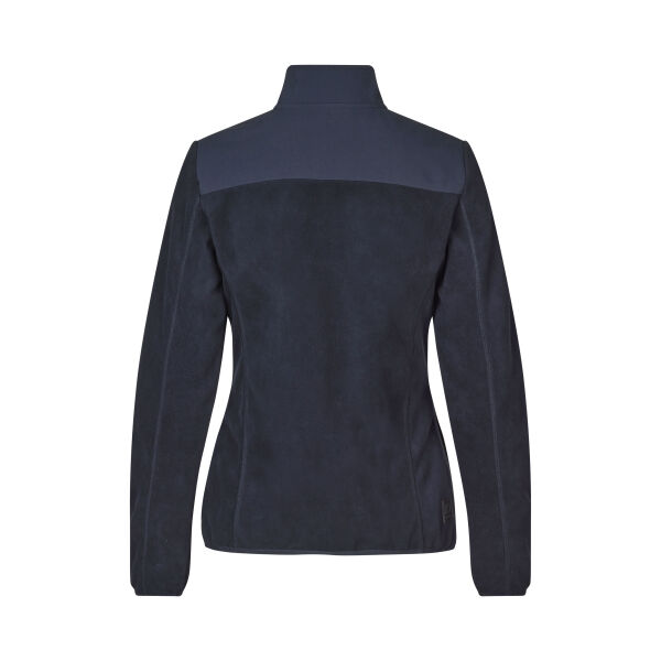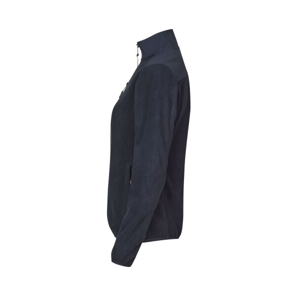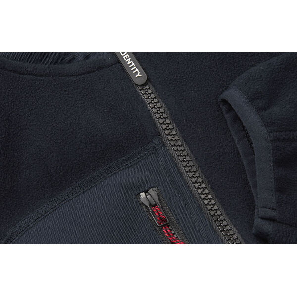 Slijtvaste jas van zachte gebonden fleece stof met applicatie. Fleece materiaal aan de binnenkant van de kraag. Elastische zoom en mouwen. YKK rits aan de voorkant, borstzakken en steekzakken. Kan gewassen worden tot 60 graden en in de droger.