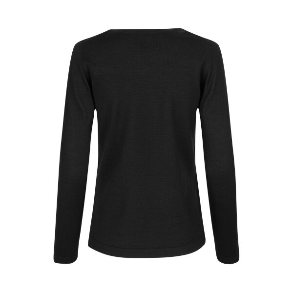 Elegante damestrui met ronde hals van zachte en behaaglijke mulesing-vrije merinowol. Slimme details bij de nek en schouders voor een klassieke tijdloze look. Perfect voor zowel werk als vrije tijd. Machinewas op wolprogramma - Gemakkelijk te vormen na het wassen.