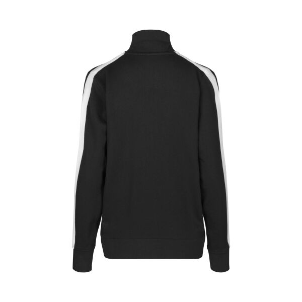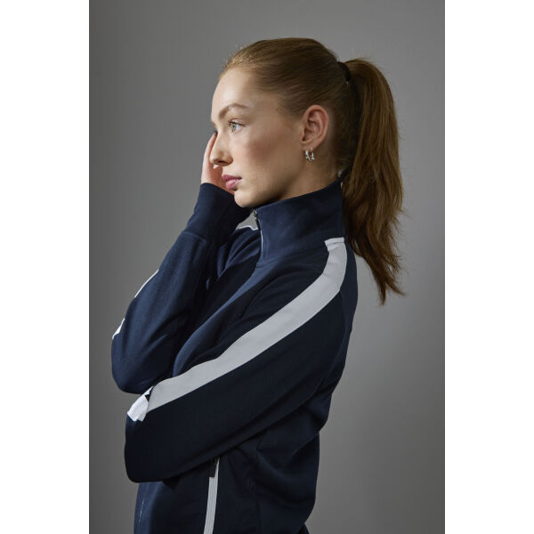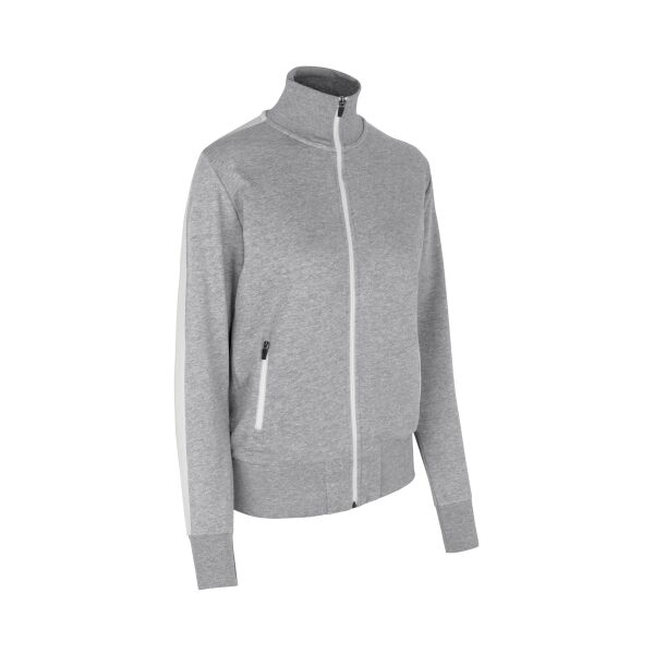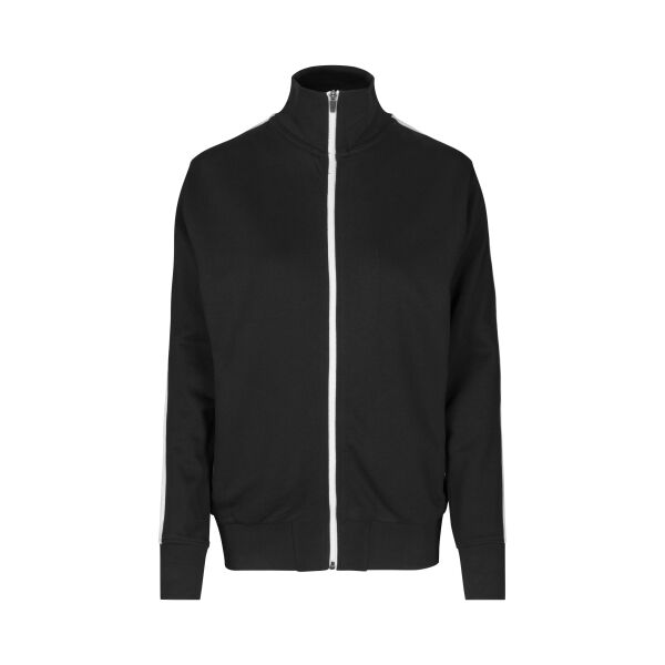 Sportief vest in sterke kwaliteit met contrasterende strepen op de mouwen. Rits over de hele lengte en twee zijzakken met ritsen in contrasterende kle…