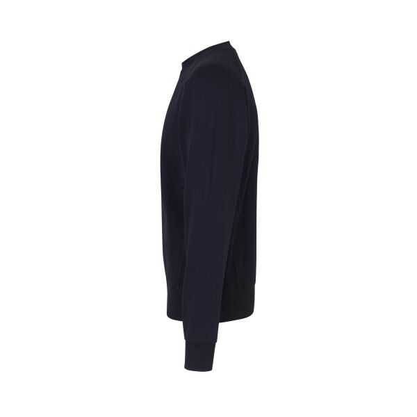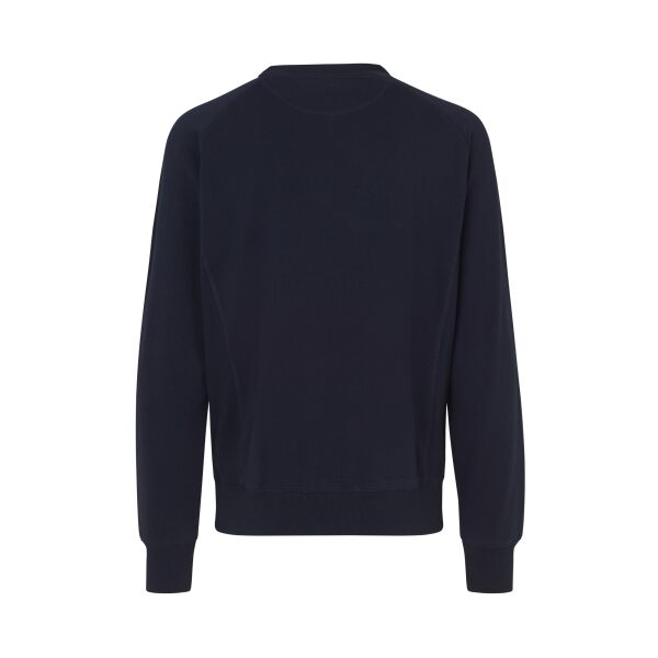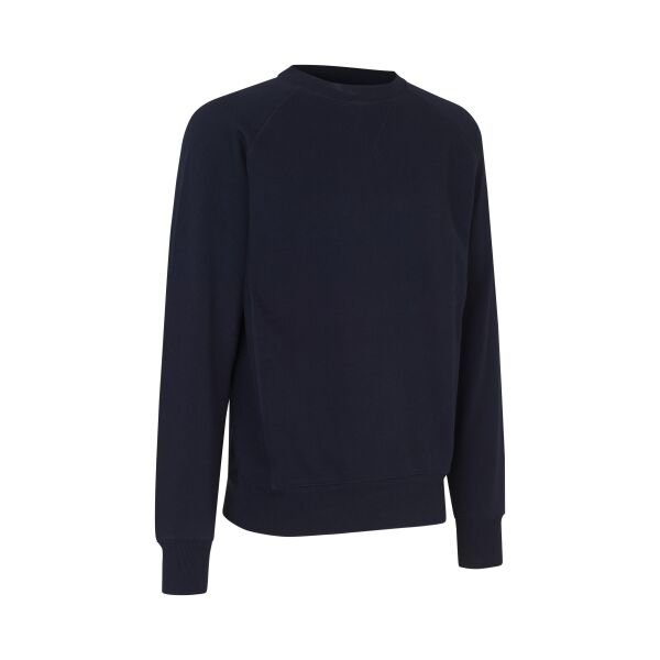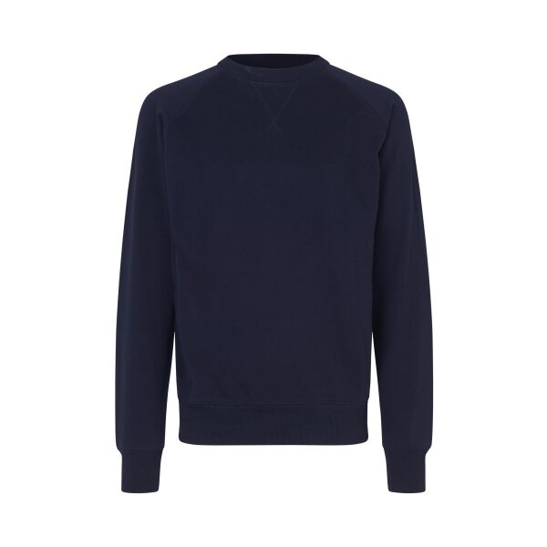 Sweatshirt van topkwaliteit in sterke kwaliteit met ongeborstelde binnenstof. Tweelaagse ribbels aan de onderkant, nek en polsen en eenlaagse ribbels aan de zijkanten en bij het V-detail in de halslijn. Halve maan bij de hals en ton-sur-ton nekband.
