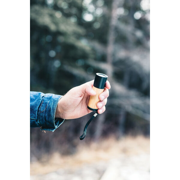 Pocketformaat zaklamp gemaakt van FSC® 100% bamboe en RCS (Recycled Claim Standard) gecertificeerd gerecycled ABS. Totale gerecyclede inhoud: 36% op …