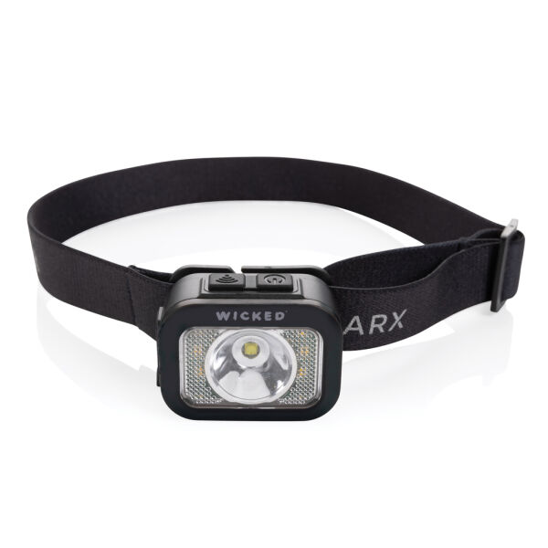 Krachtige hoofdlamp met geïntegreerde hoogwaardige COB- en LED-verlichting. De hoofdlamp kan tot 250 lumen produceren en heeft een bereik van 70 meter. De behuizing van de hoofdlamp is gemaakt van RCS-gecertificeerd gerecycled ABS-plastic. RCS (Recycled Claim Standard) is een standaard om de gerecyclede inhoud van een product in de hele toeleveringsketen te verifiëren. Totale gerecyclede inhoud: 23% op basis van het totale gewicht van het artikel. De hoofdlamp is IPX4 waterdicht en stofbestendig. Met verstelbare hoofdband om op alle maten te passen. De hoofdlamp heeft een oplaadbare lithiumbatterij van 800 mAh die 3 uur lang ononderbroken gebruik mogelijk maakt op één lading. Met 6 lichtmodi, waaronder 100%, 50% en SOS-modus. Opladen is eenvoudig via type C.