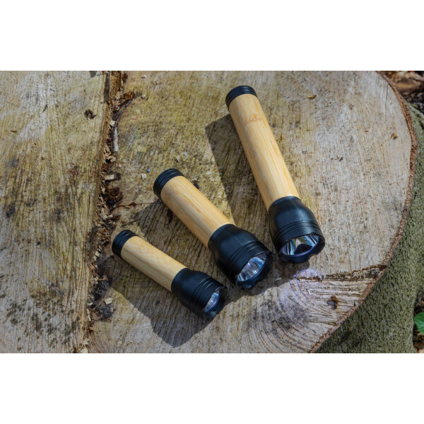 Oplaadbare USB-zaklamp van 5W gemaakt van FSC® 100% bamboe en RCS (Recycled Claim Standard) gecertificeerd gerecycled ABS. Het totale gerecyclede mat…