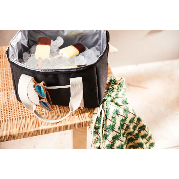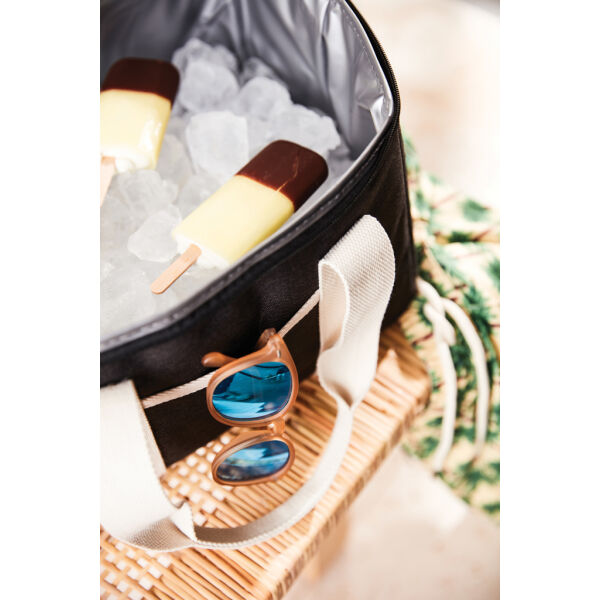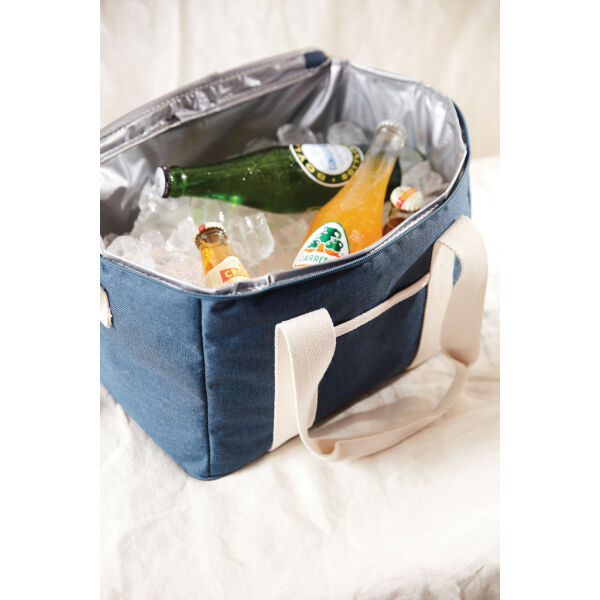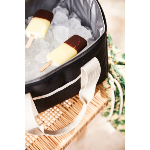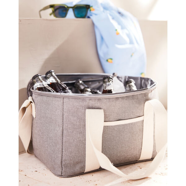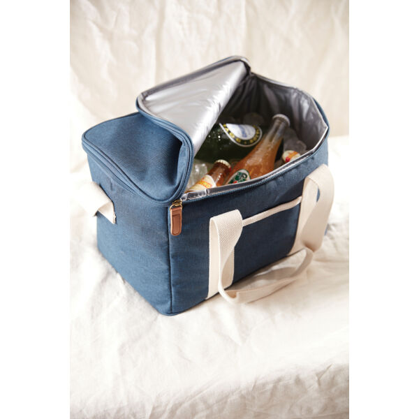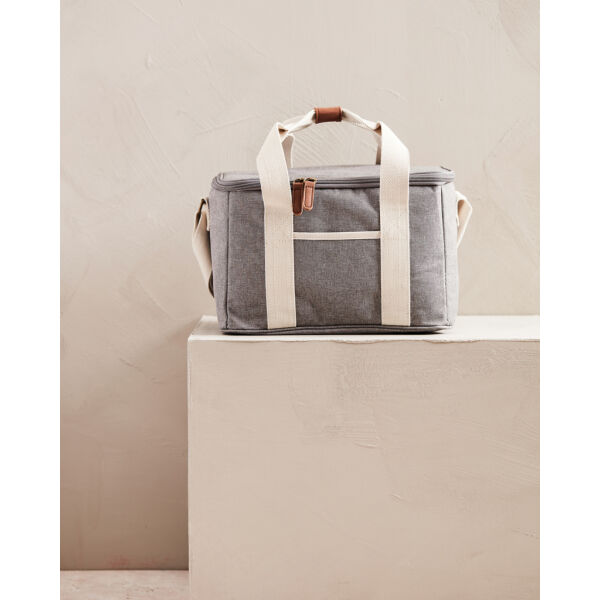 Een ultieme koelmand met gemêleerde kleuren en details gemaakt van katoen en imitatieleer. De koeltas heeft ook een klein compartiment aan de buitenkant van de koeltas, dat ruimte biedt voor nog andere spullen. De dikke EVA-vulling zorgt ervoor dat de kou lang wordt vastgehouden. Het is ook gemakkelijk te reinigen en te drogen na gebruik. Met een verstelbare schouderband en een dubbel handvat heeft u verschillende manieren om de koeltas te dragen.
