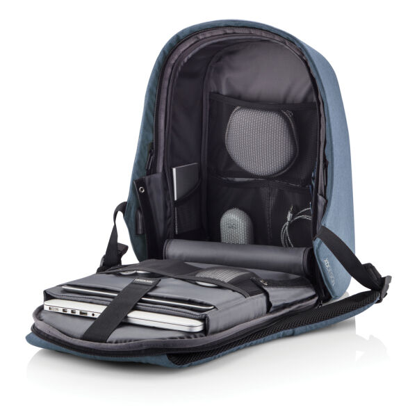 De Bobby Hero lijn is onze nieuwe generatie anti-diefstal rugzakken. Dit nieuwe model helpt u om altijd veilig, zorgeloos en georganiseerd te reizen. Het snijvaste en waterafstotende materiaal waar de tas van gemaakt is en de verborgen ritssluitingen & zakken houden uw spullen veilig terwijl u onderweg bent. Bobby Hero is ook een heel handige rugzak met functies zoals een geïntegreerde USB-laadpoort, oplichtende veiligheidsstrips en een bagageband. Aan de binnenkant zitten gewatteerde compartimenten voor een 13,3" laptop, tablet tot 12,9" en al uw andere spullen. De rugzak is gemaakt van 22 rPET (gerecyclede PET-flessen). Geregistreerd ontwerp®