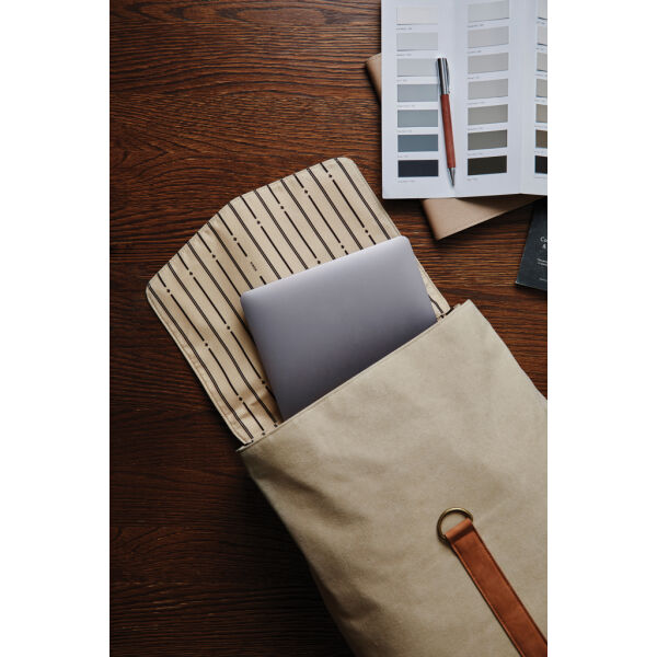 Een verfijnde tas gemaakt van 62% gerecyclede materialen. Deze gewatteerde computertas is geschikt voor laptops tot 17" en zal jarenlang nuttig zijn dankzij de hoogwaardige materialen en het klassieke ontwerp. Gemaakt van GRS (Global Recycle Standard) gecertificeerde gerecyclede materialen, waarbij de GRS-certificering een volledig gecertificeerde toeleveringsketen van gerecyclede materialen garandeert. Totale gerecyclede inhoud gebaseerd op het totale productgewicht.Geschikt voor laptops met een grootte van in totaal 17 inch. Denk eraan dat de afmetingen van het scherm niet hetzelfde zijn als die van de gehele laptop.