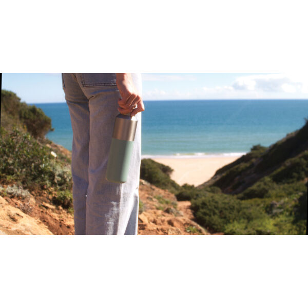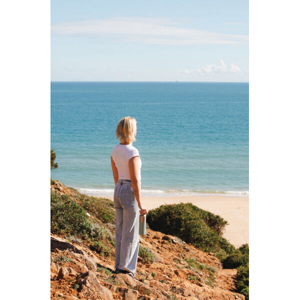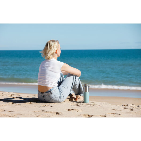Deze 600 ml waterfles heeft een opvallende dubbelgekleurde buitenkant met een stijlvol half-half ontwerp. De dubbelwandige vacuümconstructie van gerecycled roestvrij staal houdt dranken tot 15 uur gekoeld of tot 5 uur warm. De waterfles past in de meeste standaard bekerhouders in de auto, wat hem perfect maakt voor onderweg. Gemaakt van RCS (Recycled Claim Standard) gecertificeerde gerecyclede materialen, wat zorgt voor een volledig gecertificeerde toeleveringsketen van de gerecyclede materialen. BPA-vrij. Inclusief FSC®-gecertificeerde kraft koker geschenkverpakking. Totaal gerecyclede inhoud: 95% op basis van het totale gewicht van het artikel.