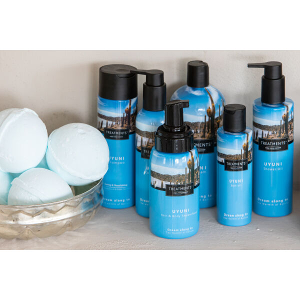 Laat de stress van de dag van u afglijden zodra uw in bad stapt en droom weg met de heerlijke geuren van Uyuni uit de exclusieve Giftbox Bath Experience van Treatments®! Deze luxe box bevat werkelijk alles wat u nodig hebt voor een onvergetelijke bad ervaring. Dompel uzelf onder in de luxe van onze Bath Foam voor rijk schuim of kies de voedende Bath Oil voor een zijdezachte huid. Reinigen gaat moeiteloos met de Foaming Shower Gel en de exfoliërende Sea Salt Body Scrub biedt een verkwikkende boost voor uw huid. Bovendien ontvangt u ook twee kortingsvouchers waarmee u met 50% korting de entree, heerlijk kunt genieten van een dagje wellness voor 2!