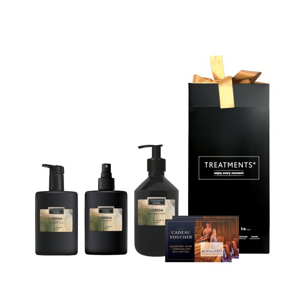 Ontdek de veelzijdigheid van de Giftset Body & Mist van Treatments® in de bijzondere Samoa geur. Deze set biedt dubbele voordelen: reinig en verz…