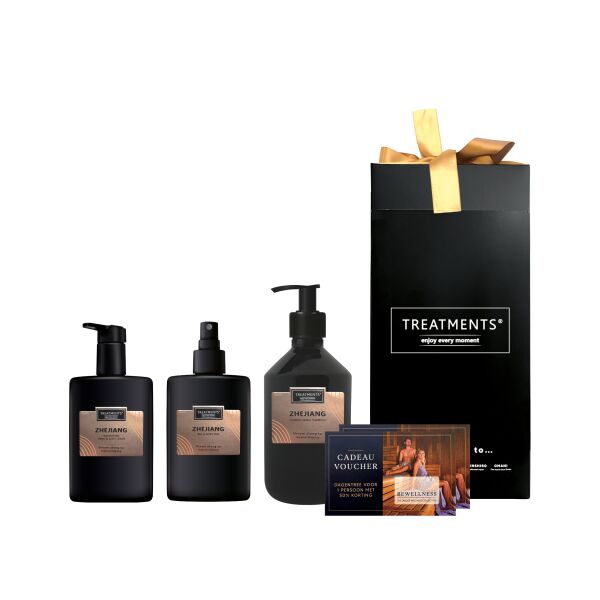 Ontdek de veelzijdigheid van de Giftset Body & Mist van Treatments® in de bijzondere Zhejiang geur. Deze set biedt dubbele voordelen: reinig en v…